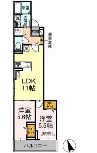 LDK 11.0帖/洋室 5.6帖/洋室 5.5帖 - 向き